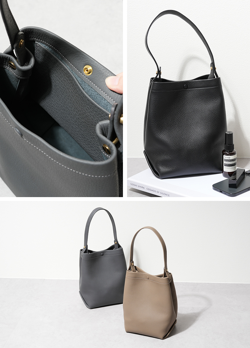 ヨーロッパから国産まで、上質なシュリンクレザーを厳選使用。特にベルシュリンクやシュランケンカーフを使った鞄は、都会的で上品な印象。トートバッグ、ショルダーバッグ、巾着バッグなど、日常にもビジネスにも使える様々な種類をご用意。シンプルで使いやすく、性別・年齢を問わないデザインが魅力です。