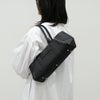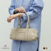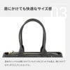 長めのハンドルは肩にかけやすい長さで、本体も大きすぎず、肩にかけたときもすっきりとしたシルエットを維持します。500mlのペットボトルや長財布も問題なく収納できる十分な容量です。
