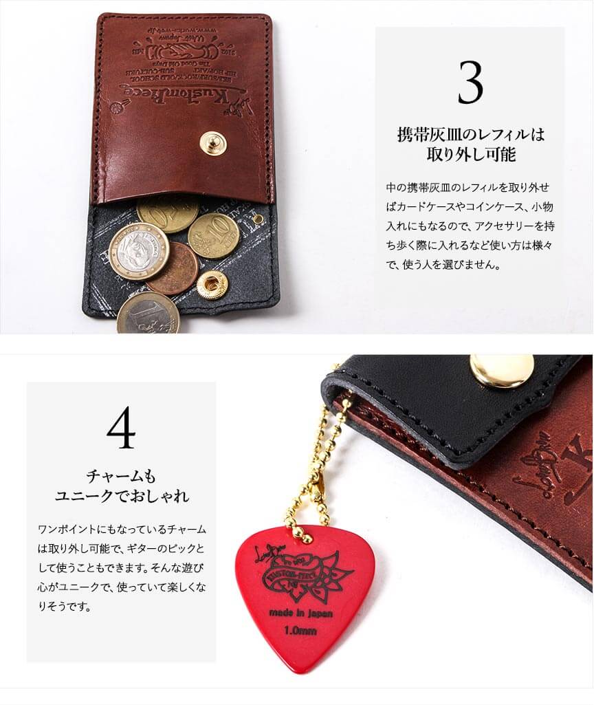 携帯灰皿としてはもちろんですが、コンパクトなコインケースとしても使用できます。