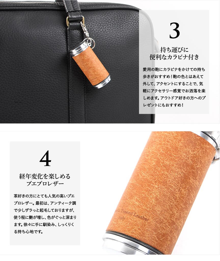 プエブロレザーの携帯灰皿を購入させていただきました。 容量の都合でロングにするか迷いましたが、こちらのサイズでも十分容量があり、大変満足しております。 またコンパクトなおかげで、自宅の鍵にキーホルダーとして付ける予定です。 プエブロレザーのエイジングを楽しみたいと思います。