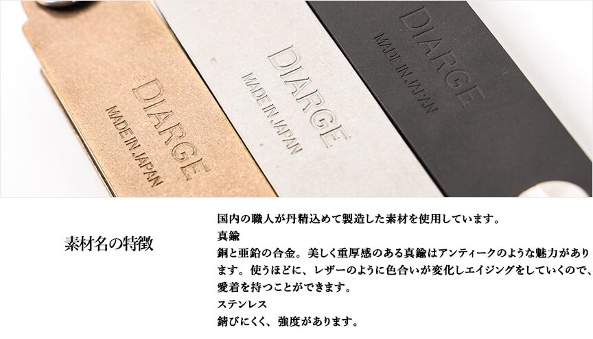 ゴールド:真鍮/ステンレス、シルバー/ブラック:ステンレス
