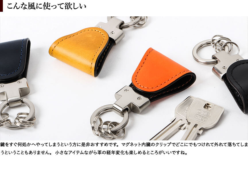 マグネットの磁力でバッグやポケットに簡単クリップ。ポケットだけではなく、バック外フレームにもクリップ可能。 保管場所として冷蔵庫やデスク、ドア等のスチール部にくっつけて保管できます。通帳、キャッシュカード、特殊カードキー等の磁気干渉の恐れのあるカード類、精密機器類等には密着させないでください。