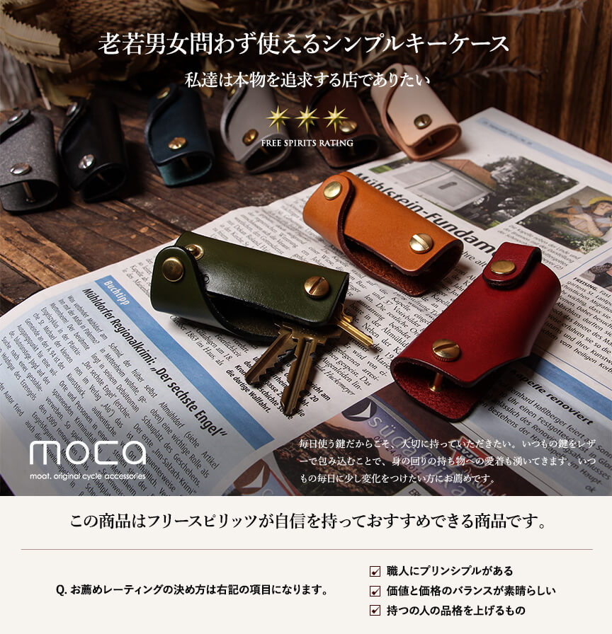 モカのキーホルダ03とセットで買いました。 最初は革が硬いですが、使っていくうちに柔くなっていきました。 フリースピリッツさんで今年初めて買いましたが、3回目の購入になります。発送も早くて、丁寧だと思います。