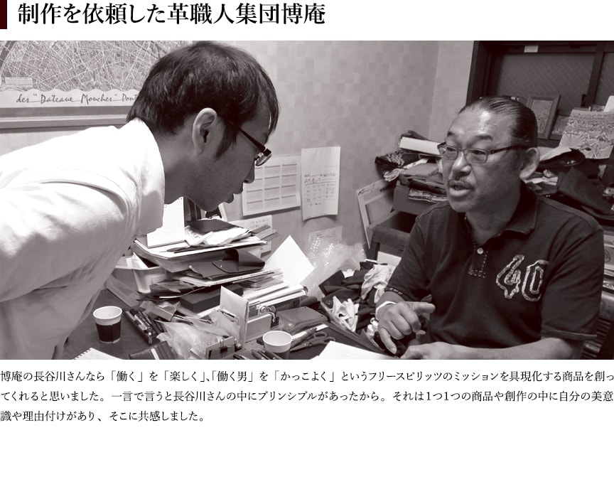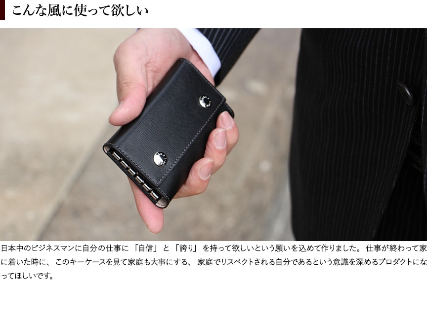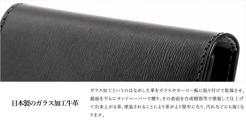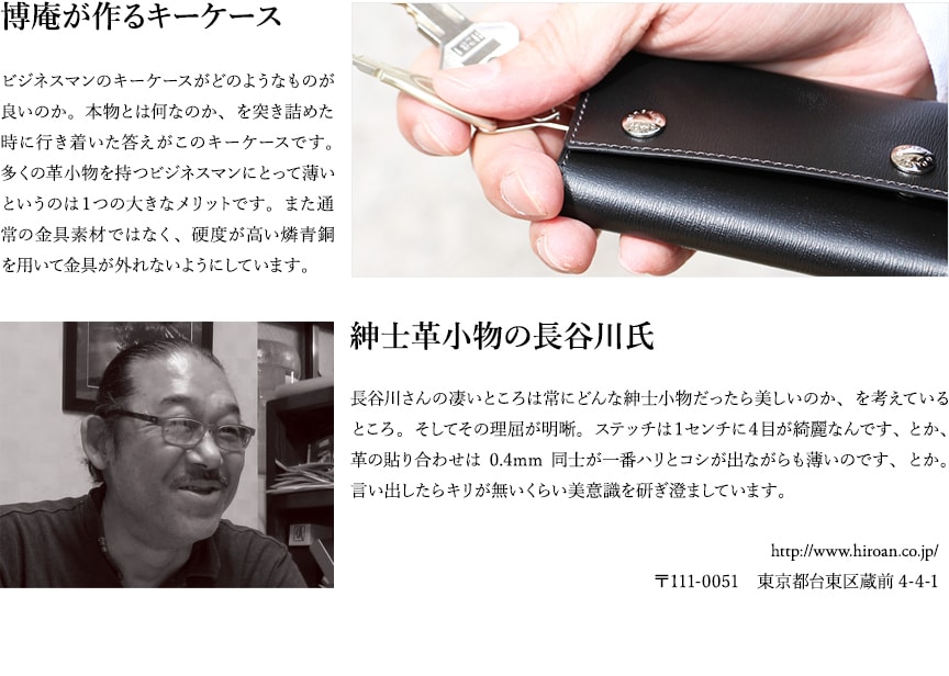 牛ステア・ガラス型押 (ソフトハニー) × ベタ貼裏用ゴート (オプティマ)、キープレートリン青銅金具使用