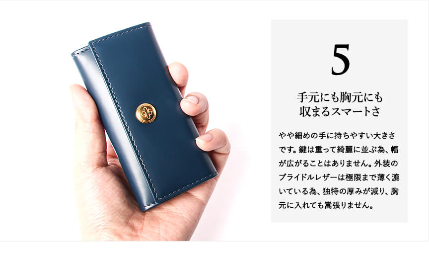 4連のフックと、着脱できるホックに大きなリングをつけたキーケース。