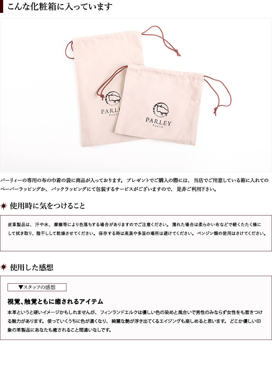 まず何と言ってもエルクレザーの質感、もちもち具合やサイズ感、外装のネイビーと内装のオレンジというデザインは私個人としても周囲の方々からも非常に評判が良くとても気に入っています!
