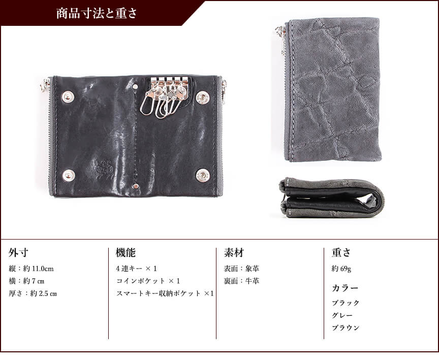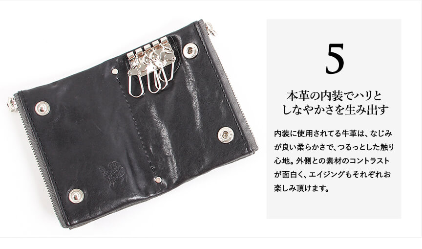 小銭入れ×1、4連キーフック×1、リモコンキー収納ポケット(金具付き)×1