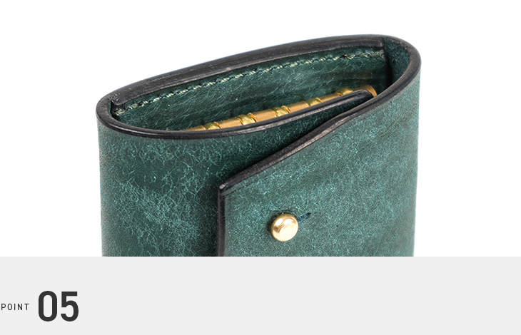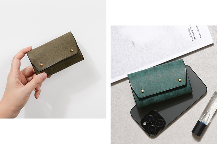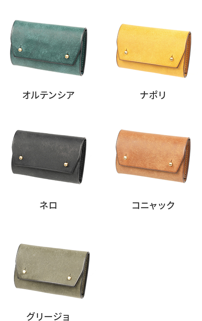 上質なオイルを豊富に含む高品質なイタリアンレザーを使用し、使い込むほどに美しい経年変化を楽しむことができるのが特徴です。ギボシやイタリーホックといった個性的かつデザイン性に溢れる留め具と、持ち替えずに出し入れしやすい直感的な収納構造が、唯一無二のアイテムとしての価値を高めています。