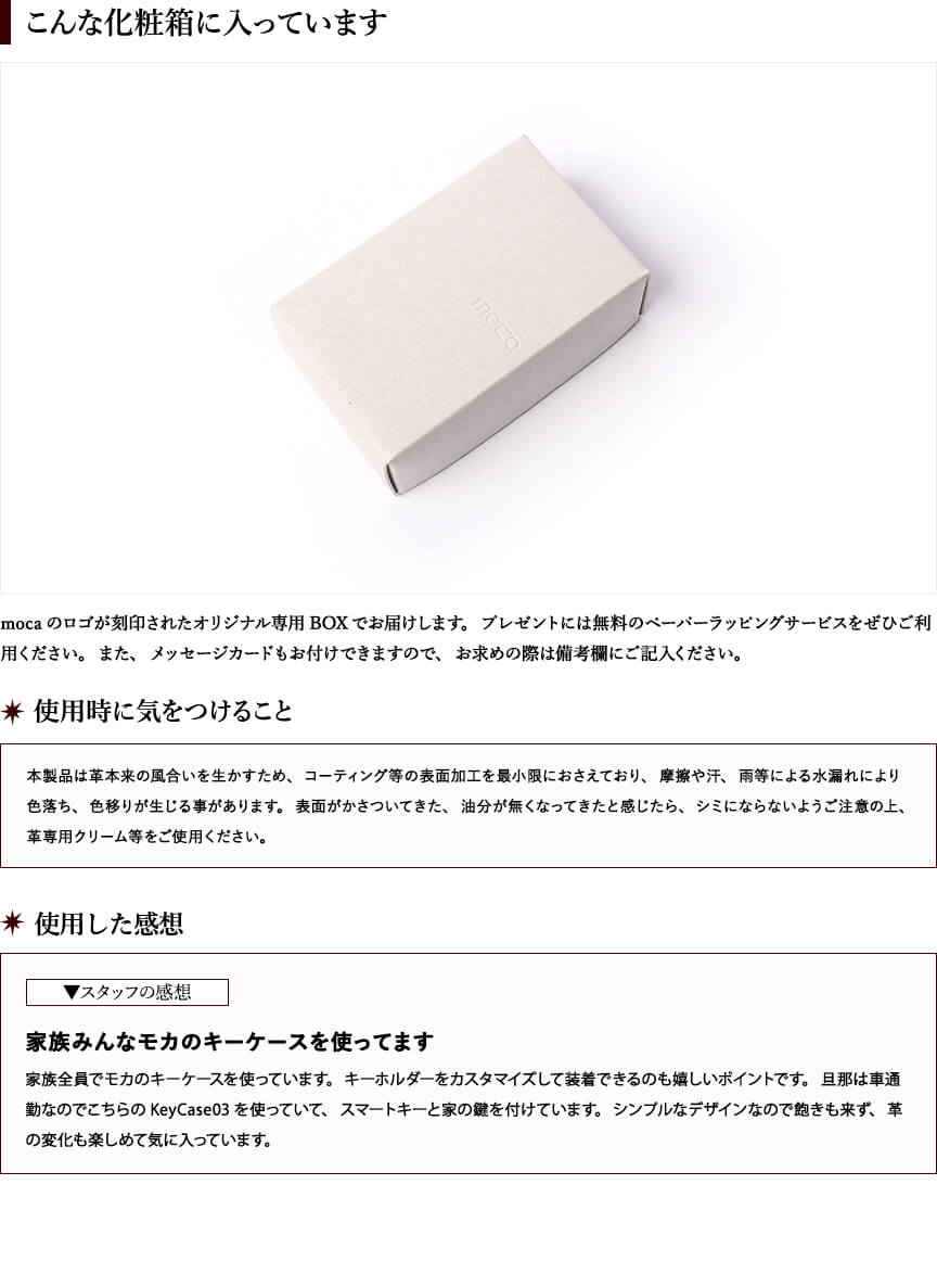 二人とも車に乗るのでスマートキーもまとめて収まるような大きめなサイズを吟味していて、カラー展開も豊富で可愛くて女性も使いやすそうだと思いました。その際のメールでの問い合わせにも丁寧な返答を頂きました。