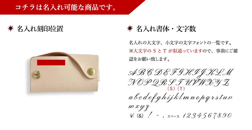 お手頃な価格も嬉しかったですが名入れが無料だったのも驚きでした。実際に見ると鍵もコンパクトに収まってくれて鞄の中で他の物を傷つける心配もなく、二人ともとても喜んでくれました。別売りのカラビナも可愛くて、選んでるうちに私も欲しくなりました。女性にも似合う商品もたくさんあったので、また利用したいと思います。