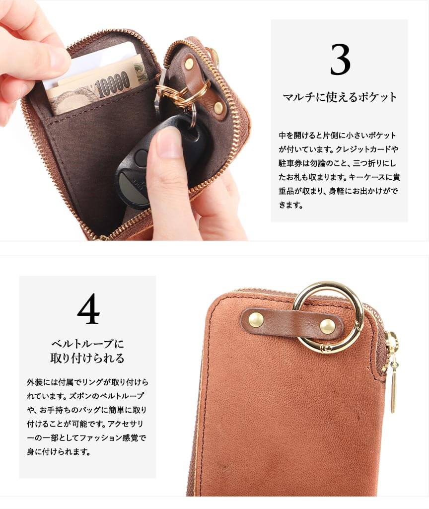 パーリィー カードも入るポケット付きL字スマートキーケース parley