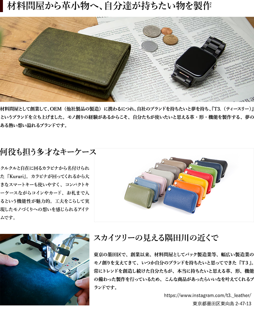 クルリ Kururi2.0 コンパクトキーケース ウォレット t3Leather