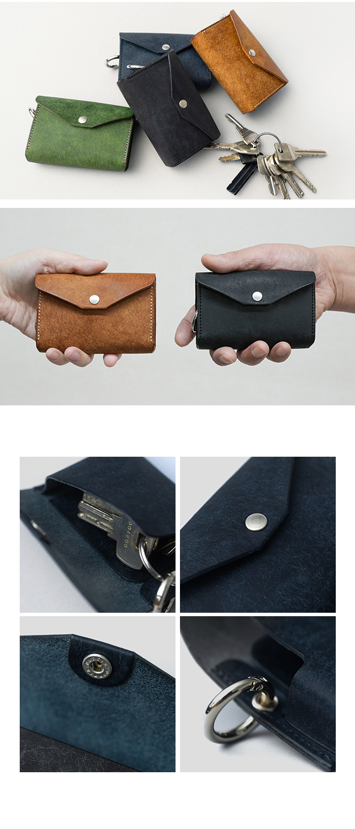 イタリア製プエブロレザーを贅沢に使用した、上質な仕立てが魅力です。大型のスマートキーや複数の鍵、カード類まで整理して収納でき、使いやすさも抜群です。使うほどに艶が増し、唯一無二の風合いへと育つ経年変化も楽しめます。シンプルでありながら存在感のある、大人の逸品です。