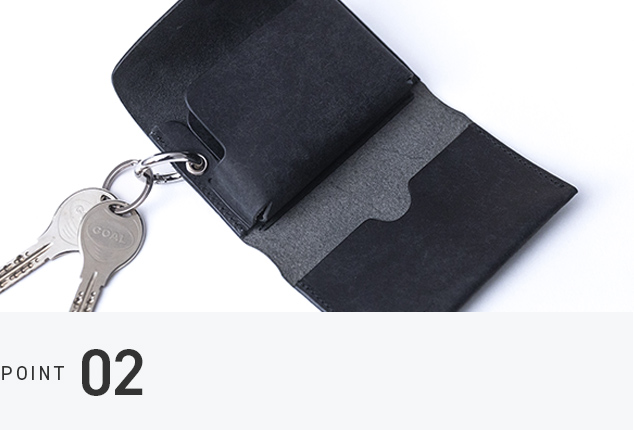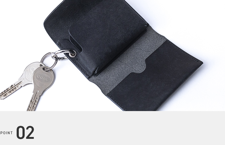 内側と外側に配置されたカードポケットは、免許証やETCカードなどの収納に最適です。運転に欠かせないアイテムを鍵とともにひとつにまとめることで、持ち物をすっきりと整理し、必要な時にすぐ取り出せます。