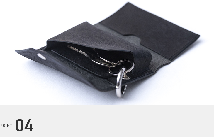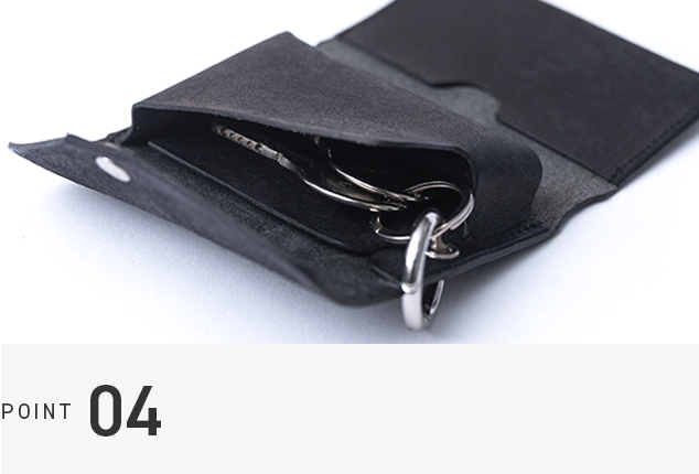 立体的でゆとりのあるサイズ設計が魅力。厚みのあるスマートキーも無理なく収まり、複数の鍵を持ち歩く方にも適した設計。コンパクトながらも、収納力と上品さを兼ね備えた万能キーケースです。