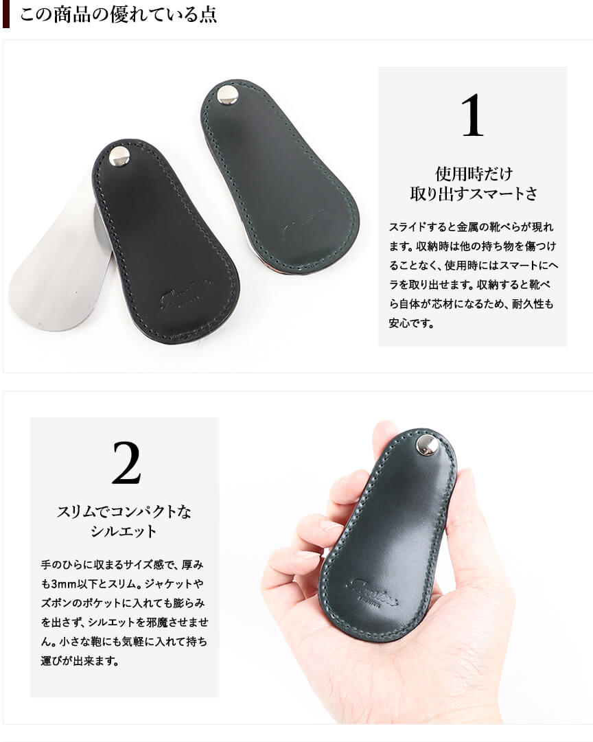 ブースターズ オイルコードバン スライド式 携帯用靴べら Boosters