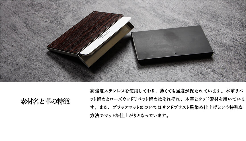 名刺入れ / 高強度ステンレス黒染め仕上本革リベット留め