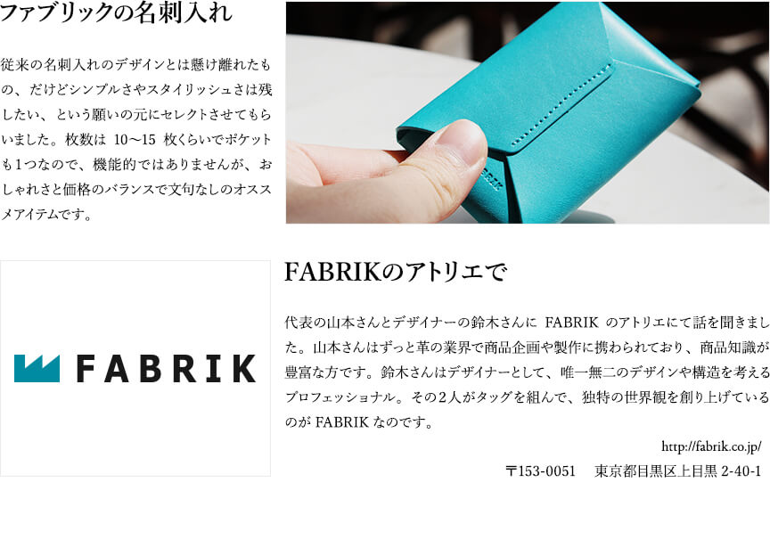 【ネコポス送料無料】 ファブリック 用途や収納枚数で選べるカードケース“10/20” CARD CASE 10-20 名刺入れ FABRIK