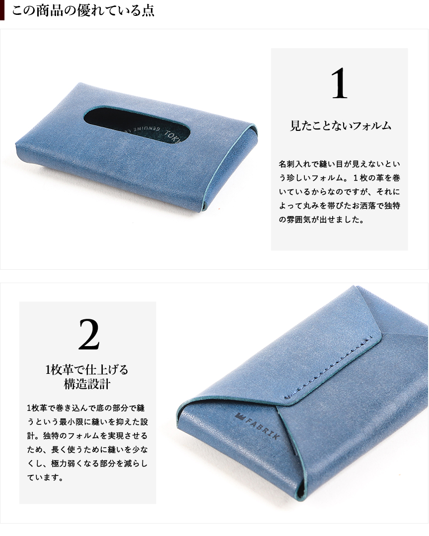 プレゼント用に購入。名刺入れの仕様だと、他と被らなう形なので、相手にも気に入ってもらいとても満足しています。