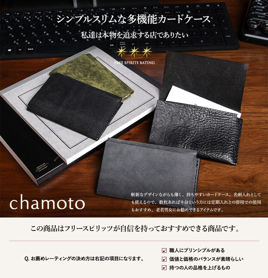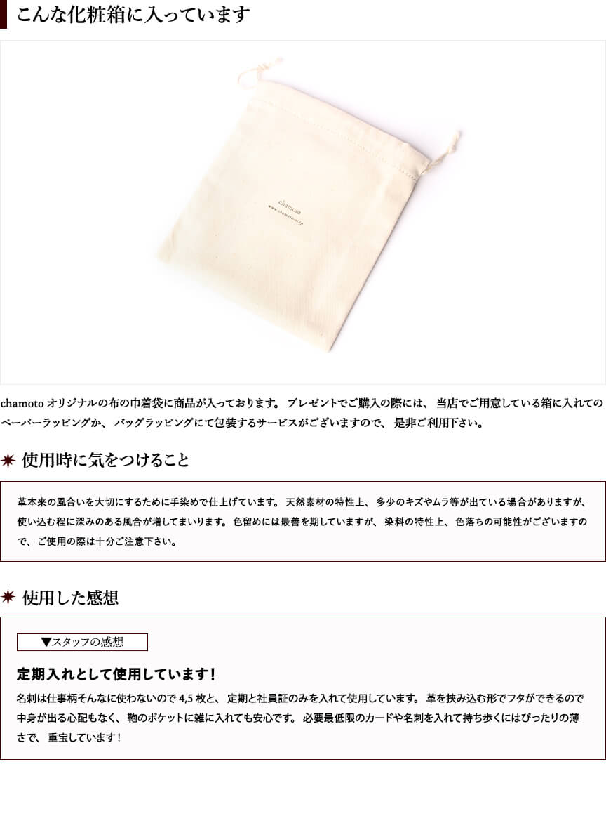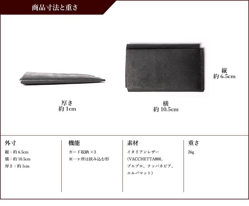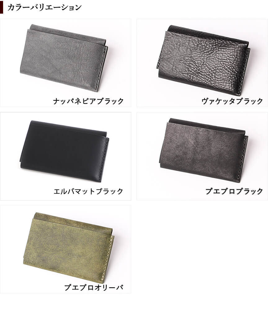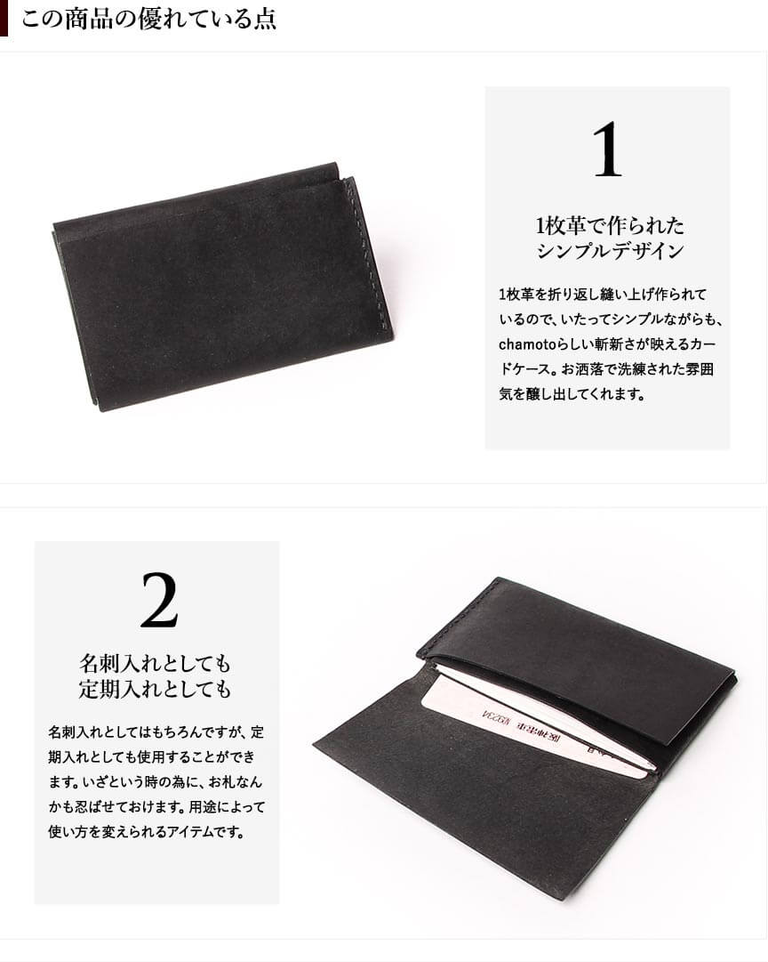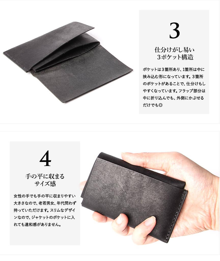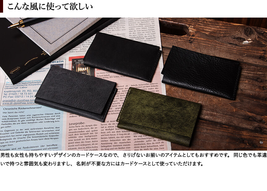 一枚革を折り返し縫い上げたシンプルな構造でスリムなカードケース 。