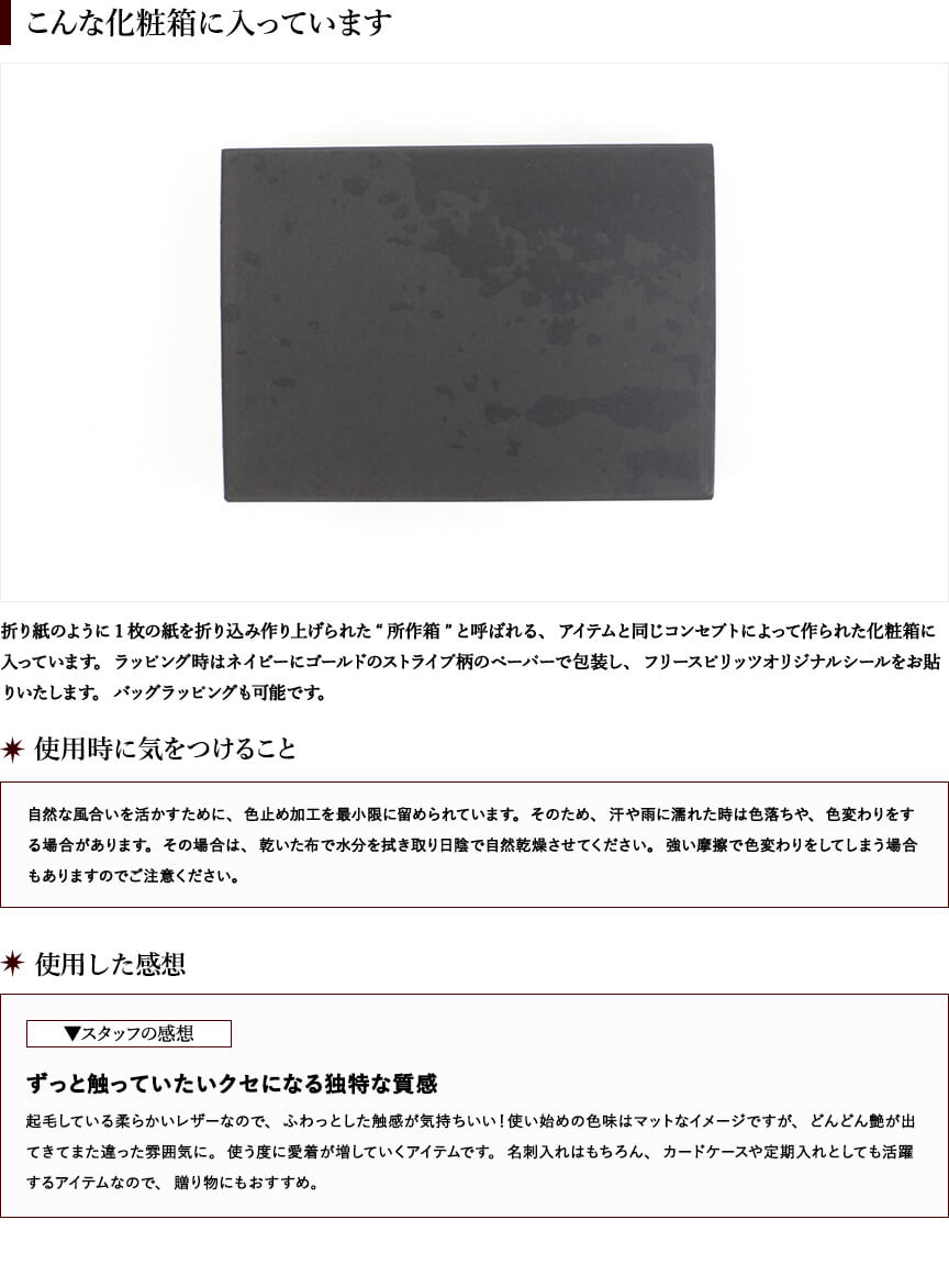 使っていた名刺入れが破れてしまったので購入しました。きれいなグレーがどう経年変化するか楽しみです。