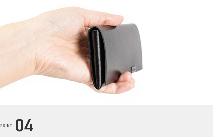 縫い目のない構造で、革への負担を軽減し、重なりを最小限に抑えています。中身を入れてもスリムなままで、ジャケットのポケットに入れてもかさばらず、スマートに持ち運べます。