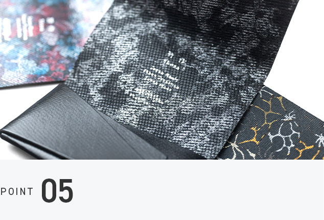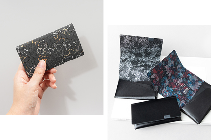 結婚式などでお祝いを包む一枚の布「袱紗(ふくさ)」をモチーフに、日本の伝統の美しさを革小物で表現しています。贈答品を包む古い様式「折形」の、革が折り重なる様子をデザインに取り入れています。礼の心を形に表す、日本だけに受け継がれてきた歴史がある美しい様式を現代の革小物に採用しています。