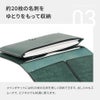 サブポケット中央のスリットは、指でカードを取り出しやすい設計となっております。定期やICカードの出し入れもスムーズです。ビジネスから通勤まで、このさりげない工夫がスマートな所作を支えるこだわりです。