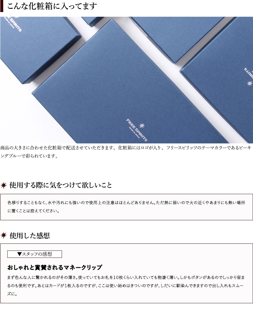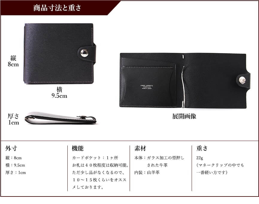 フリースピリッツ カード1枚入アオリ付 札バサミ マネークリップ Free Spirits