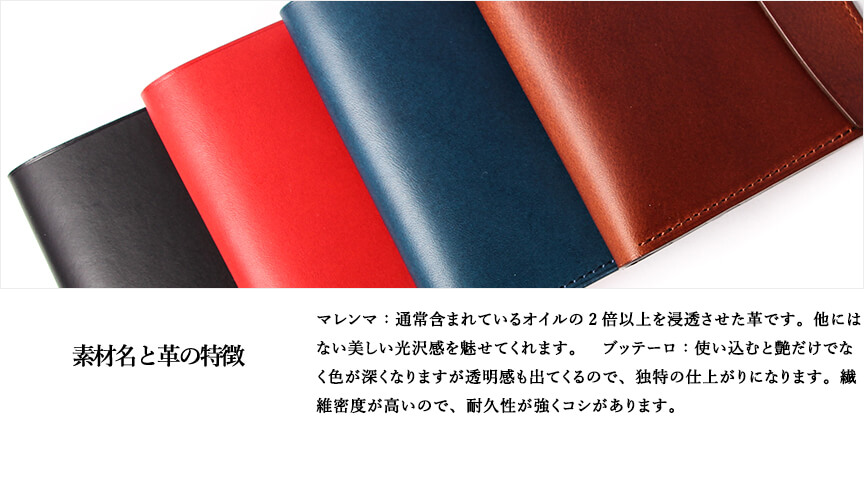 brown: Maremma [イタリア製タンニン鞣し革]、black: Buttero [イタリア製タンニン鞣し革]