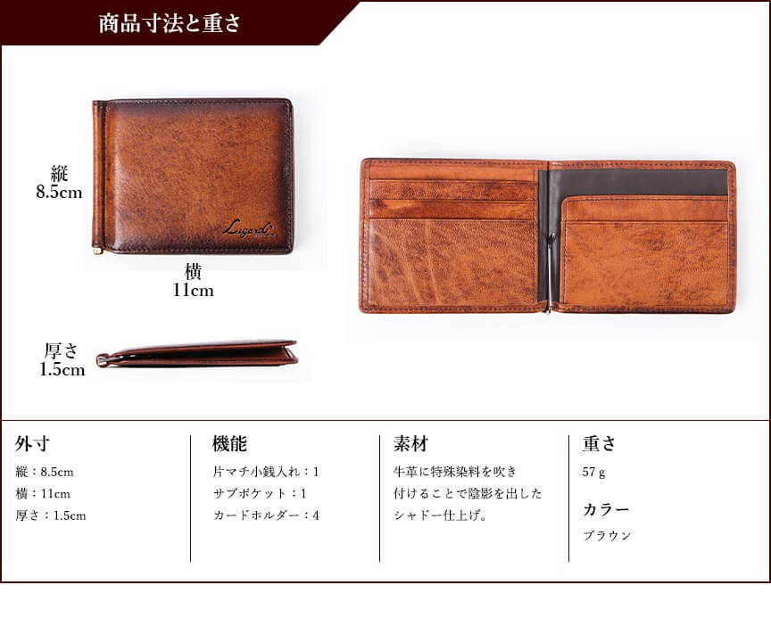 【ネコポス送料無料】 ラガード G-3 ジースリー シャドー仕上げ小銭入れ&カードホルダー付札バサミ マネークリップ Lugard