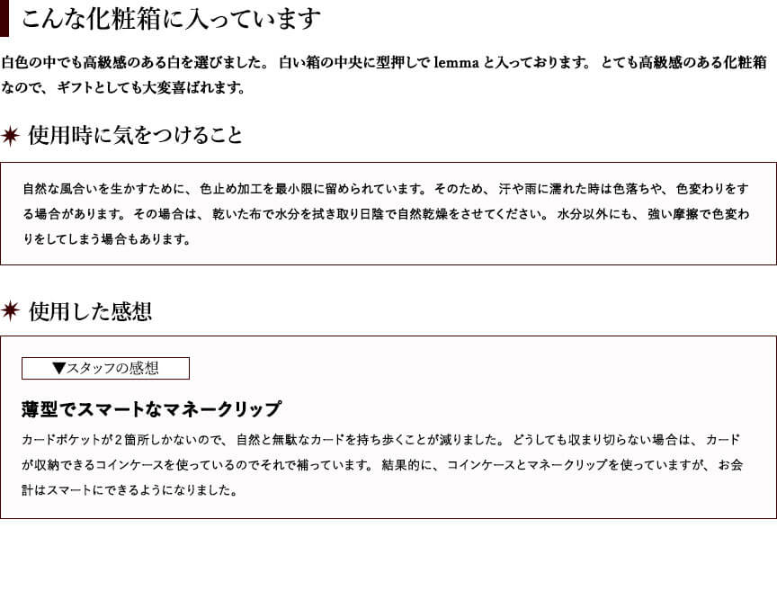 本気で末永く使いたいマネークリップをYouTubeで探してたら欲しくなって買いました。値段以上の高級感もありシンプルでカッコイイです。名前の刺繍もして頂いてこのお値段は申し分ないです。小銭入れもlemmaさんの購入したいと思います。これからもよろしくお願いします