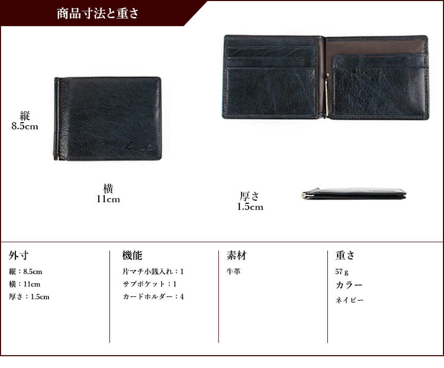 ラガード G-3 ジースリー 小銭入れ&カードホルダー付札バサミ マネークリップ ネイビー Lugard