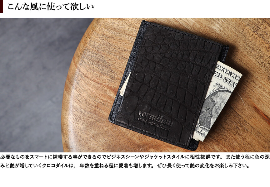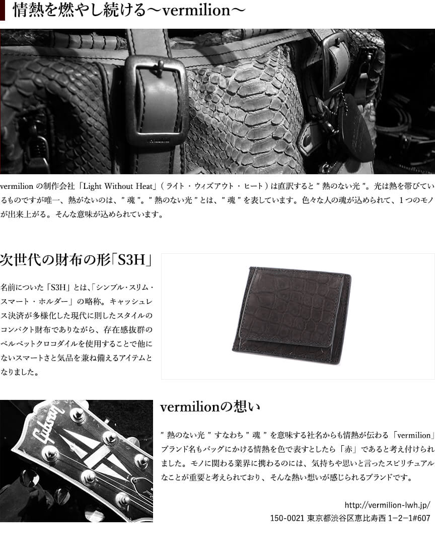 ヴァーミリオン ベルベットクロコ S3H 小銭入れ付マネークリップ vermilion