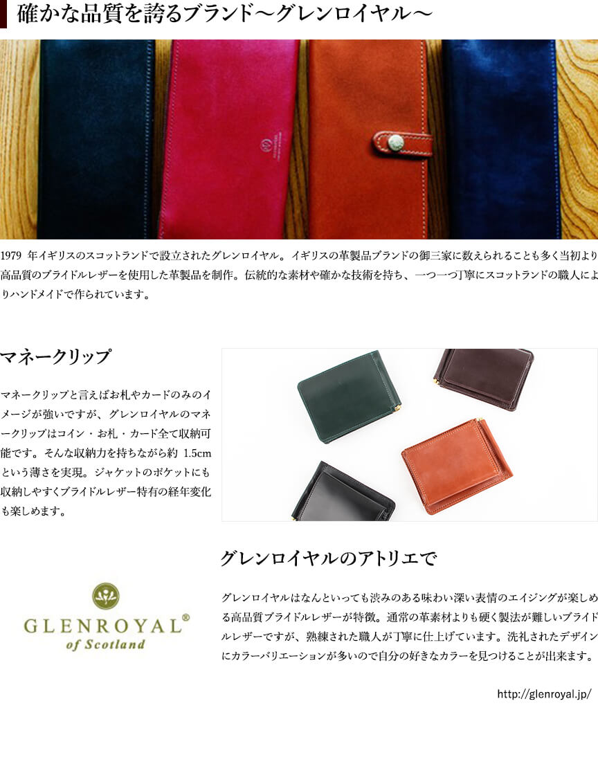 グレンロイヤル MONEY CLIP WITH POCKET マネークリップ GLENROYAL