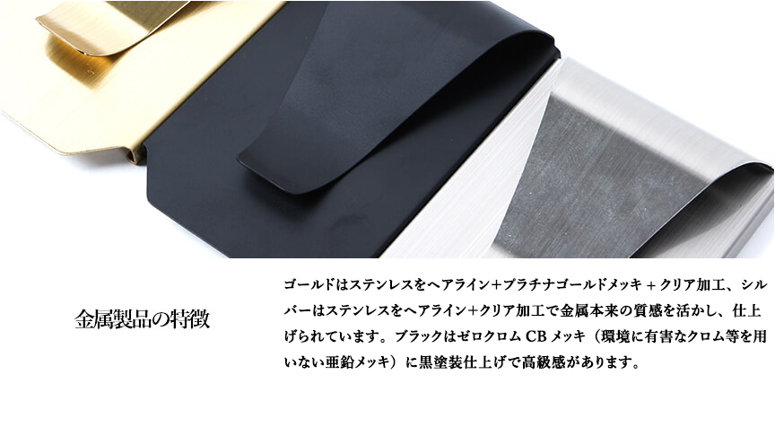 BRASS(GD)、STAINLESS STEEL(SV,BLK)