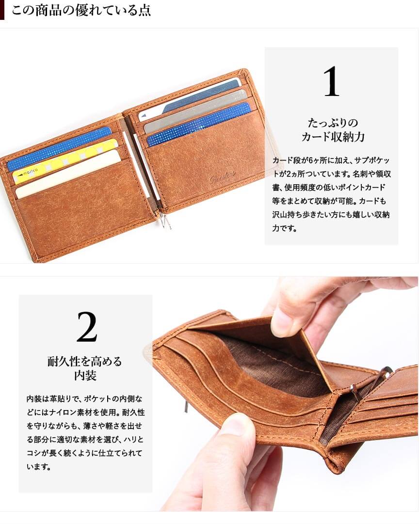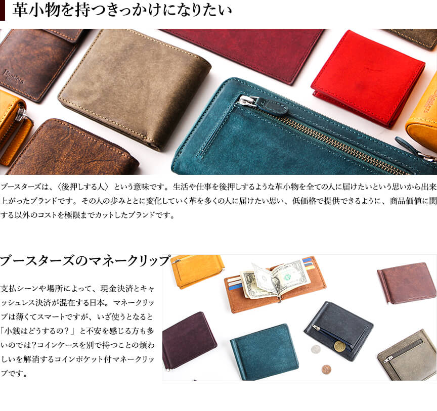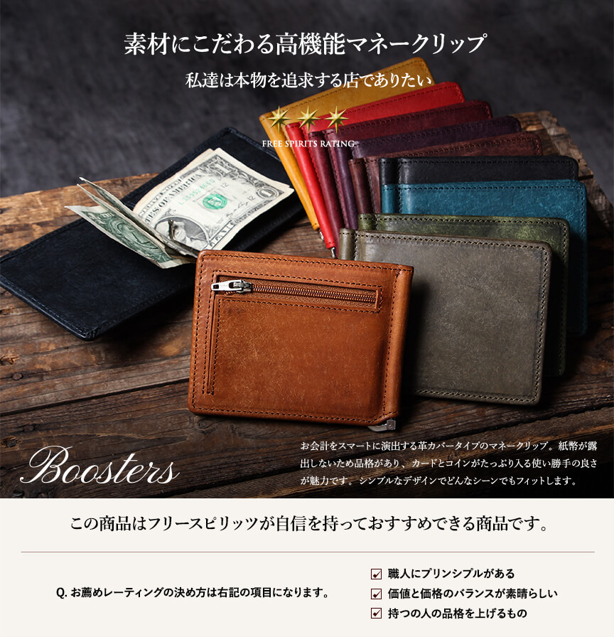 ブースターズ プエブロ 小銭入れ付き 二つ折りマネークリップ Boosters