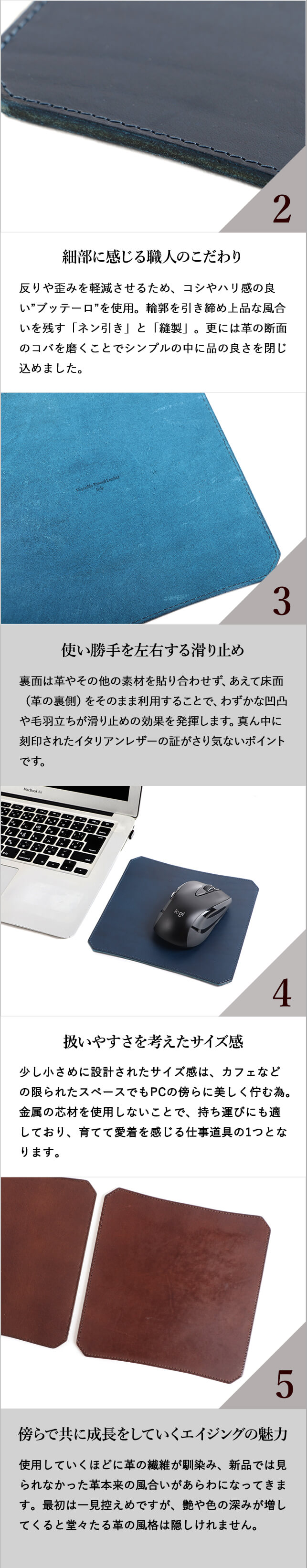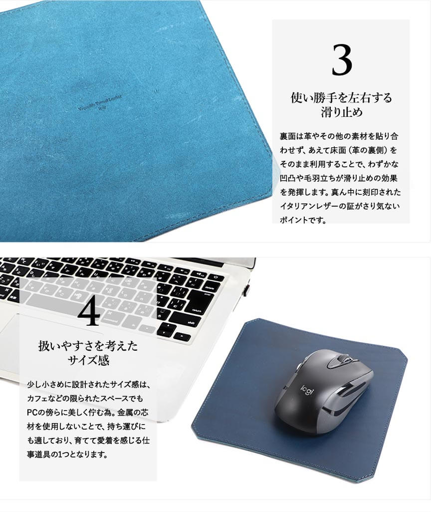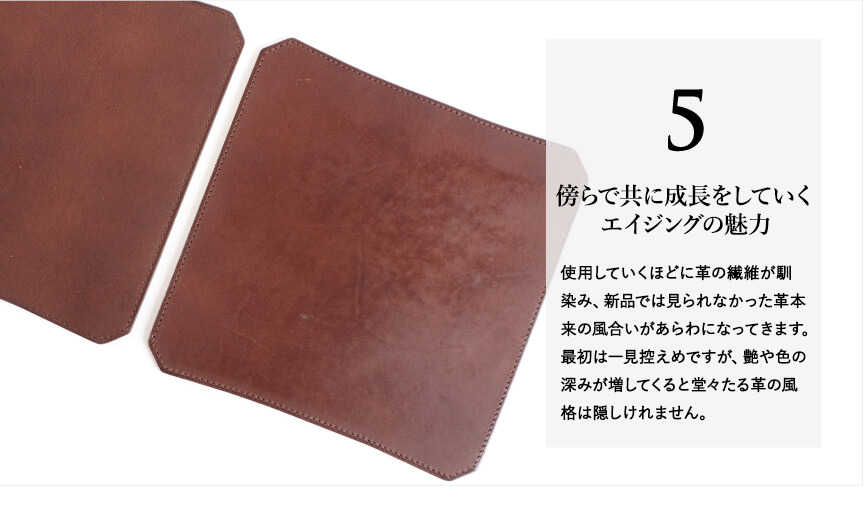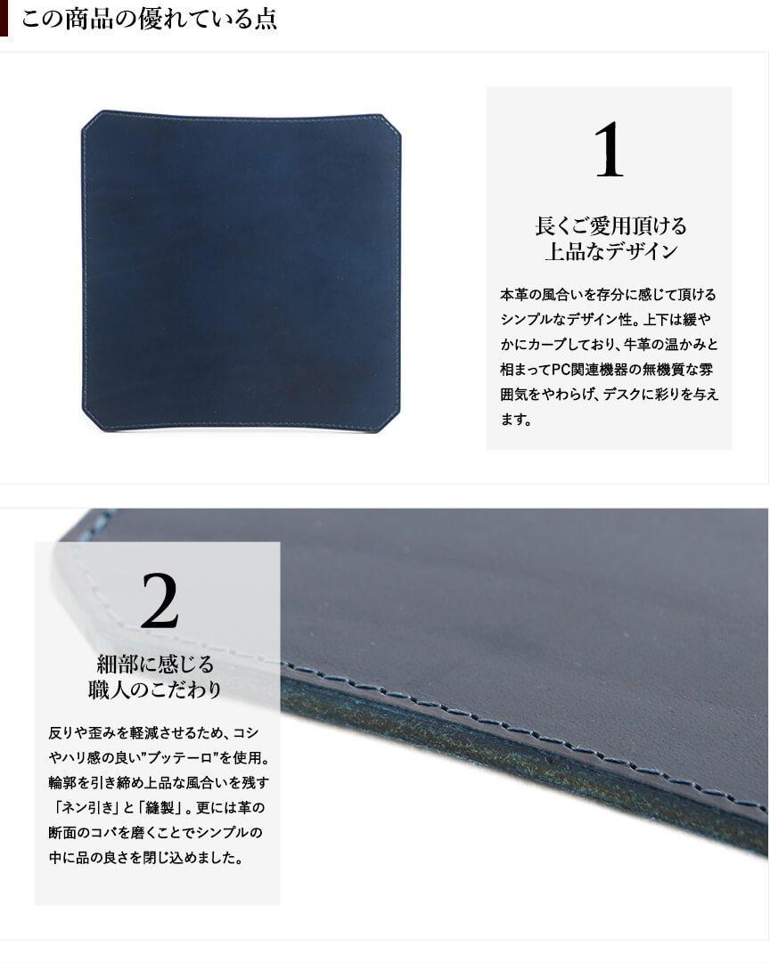 上質なベジタブルタンニンなめしのマウスパッドで、そこそこの重みがあるおかげで滑り止めがなくてもズレずに使えてます! もちろん革なので経年変化もしてきて、そろそろ半年程度の利用になりますが、ツヤが徐々に出てきました。