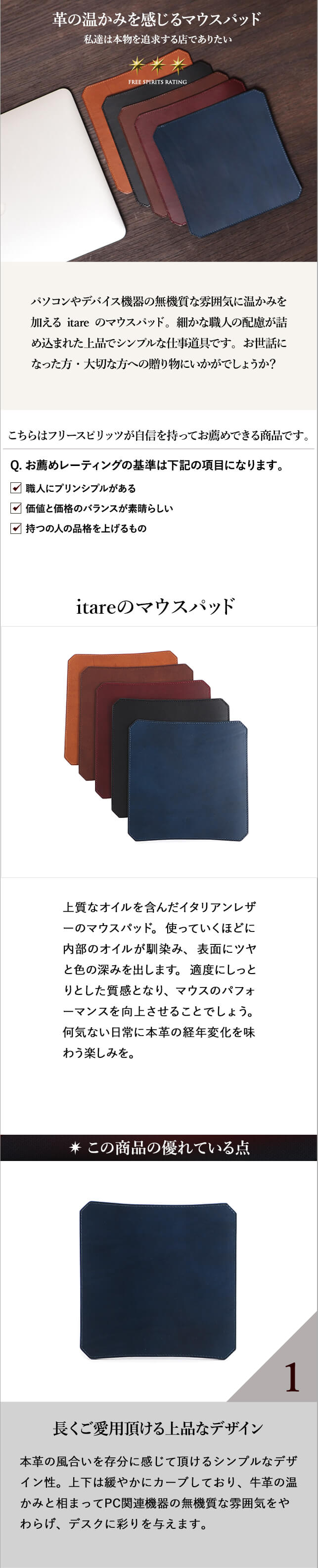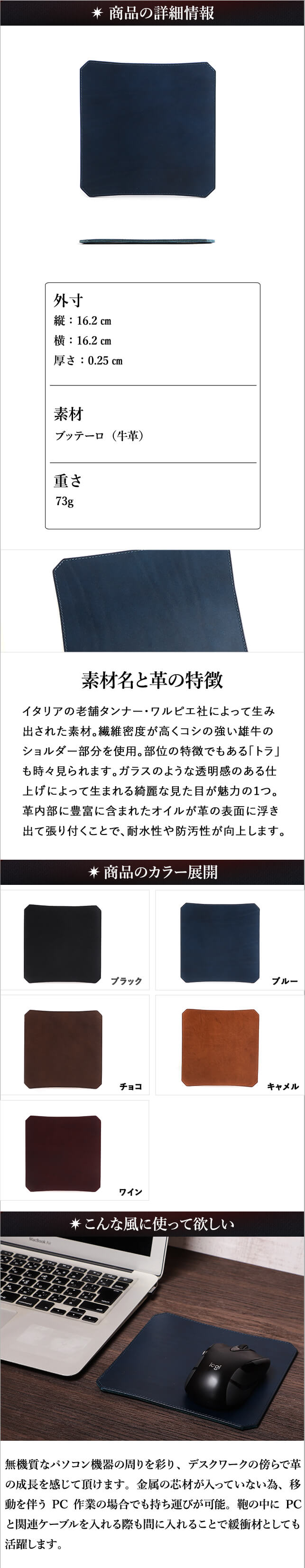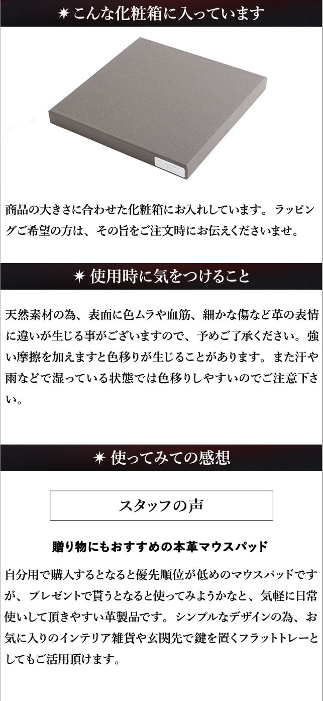 上質なベジタブルタンニンなめしのマウスパッドで、そこそこの重みがあるおかげで滑り止めがなくてもズレずに使えてます! もちろん革なので経年変化もしてきて、そろそろ半年程度の利用になりますが、ツヤが徐々に出てきました。