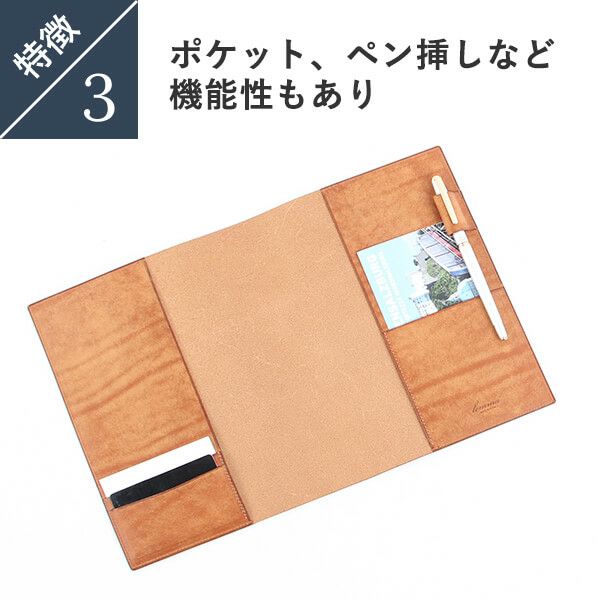 ペンホルダー、ポケット付きの革製カバーを探していて購入しました。既に3ヶ月以上バレットジャーナル用として使っています。ペンホルダーには、13mm軸のペンを挿して使っていますが、ちょうど良くフィットしています。