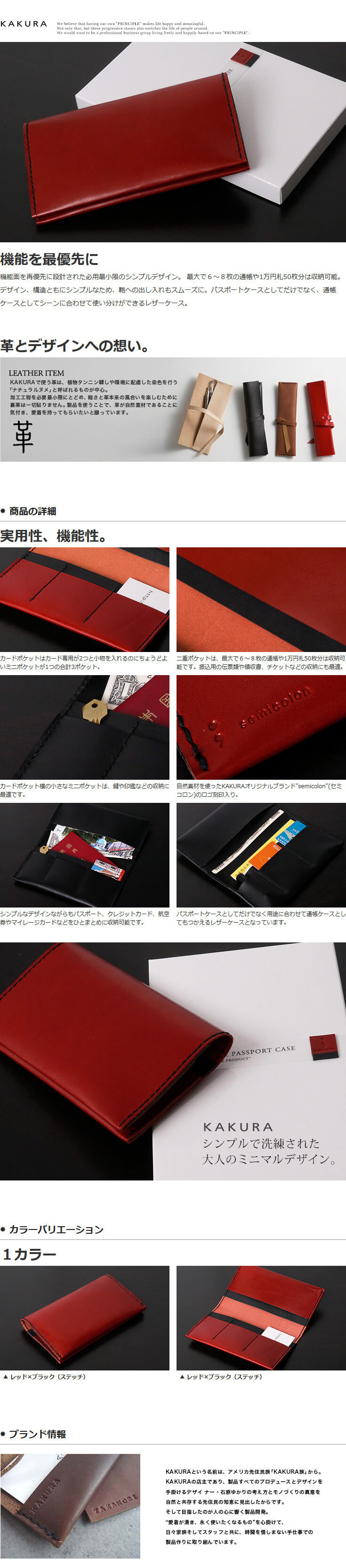 カクラの通帳&パスポートケース urushi レッド KAKURA