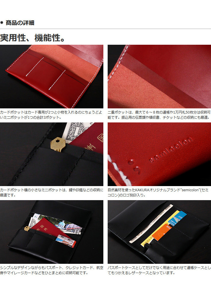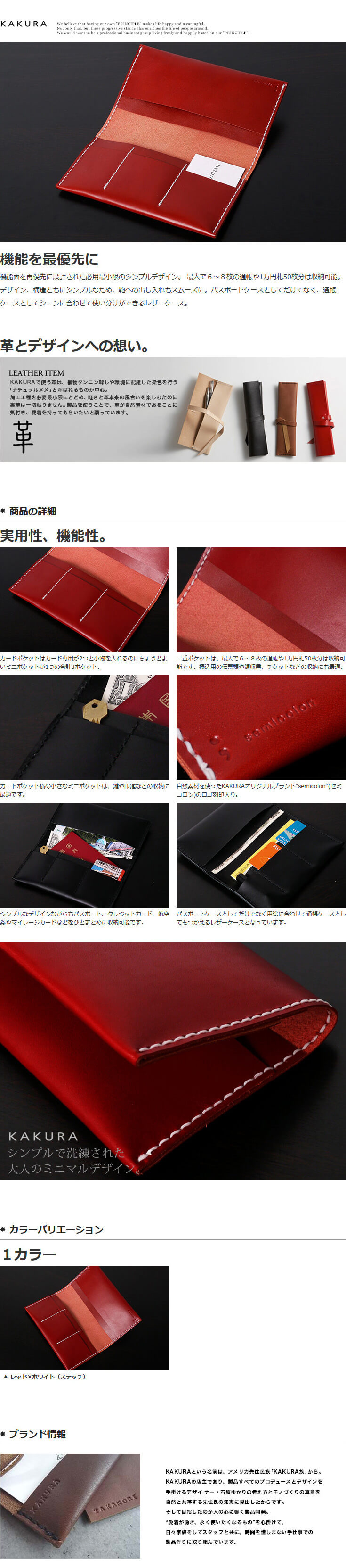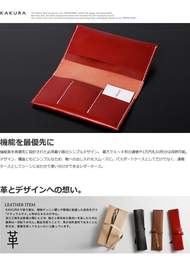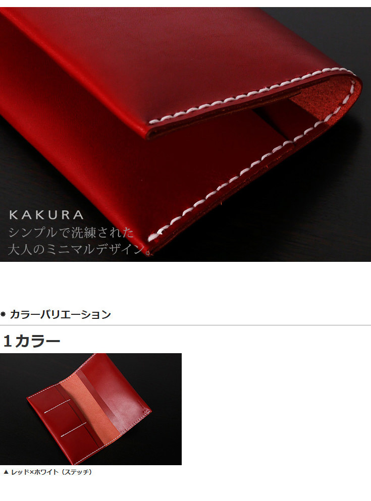 カクラの通帳&パスポートケース レッド白糸 KAKURA