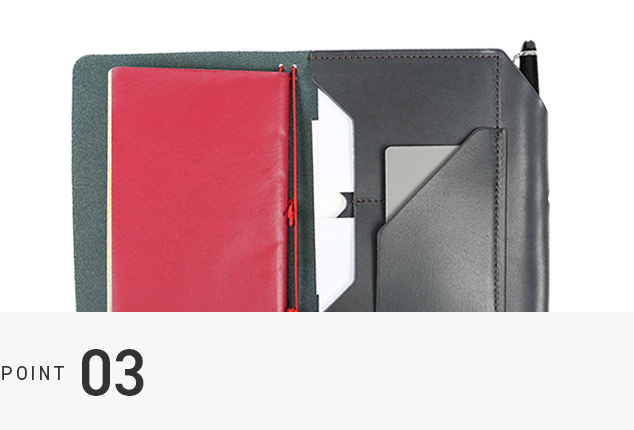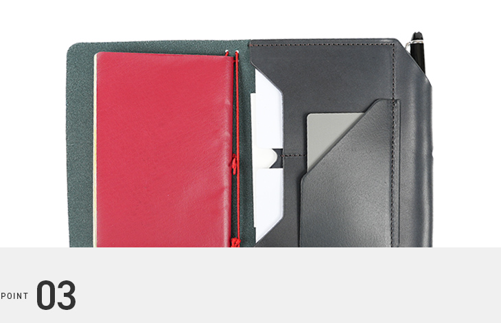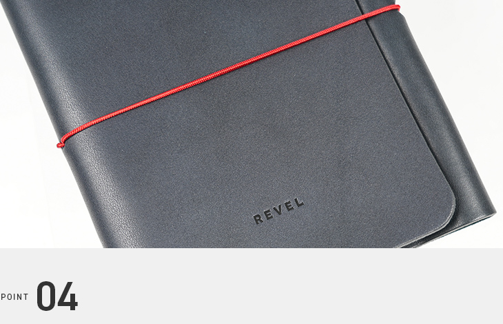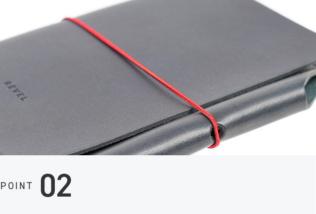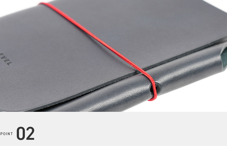 中身の容量を気にせず開閉できるゴムバンド式で、たっぷり入れてもスムーズに扱える便利な仕様。ケース全体のデザインと一体化した美しい見た目も魅力です。日常使いから旅先まで、上質でスマートな使い心地を長く楽しめます。