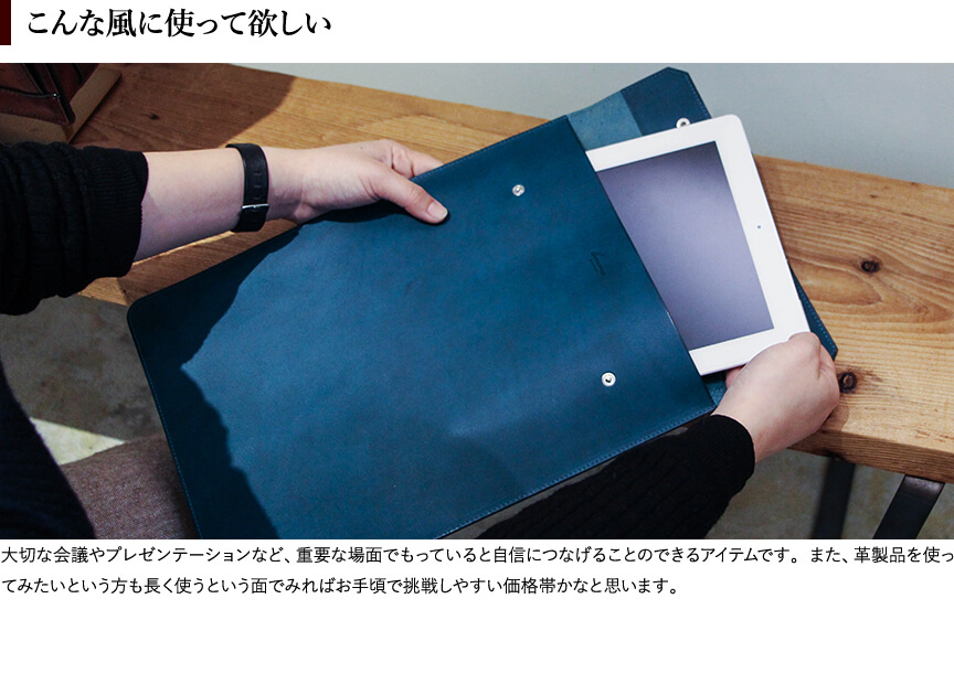 【受注生産の商品なので欲しい方は問い合わせを!】 これほんっっっとに良い商品です!私はSurface Pro8の持ち運び用として購入したのですが、サイズもぴったりで質感も最高で大満足です!全部革でできてるのに15400円なのでコスパもすごく良いと思います!大事なパソコンを守りつつ、持っていると気分が上がる。そんな一品です!