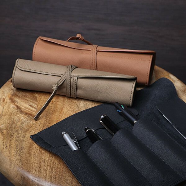 ペンが4本収納でき、丸めて持ち運ぶことができるペンケース。