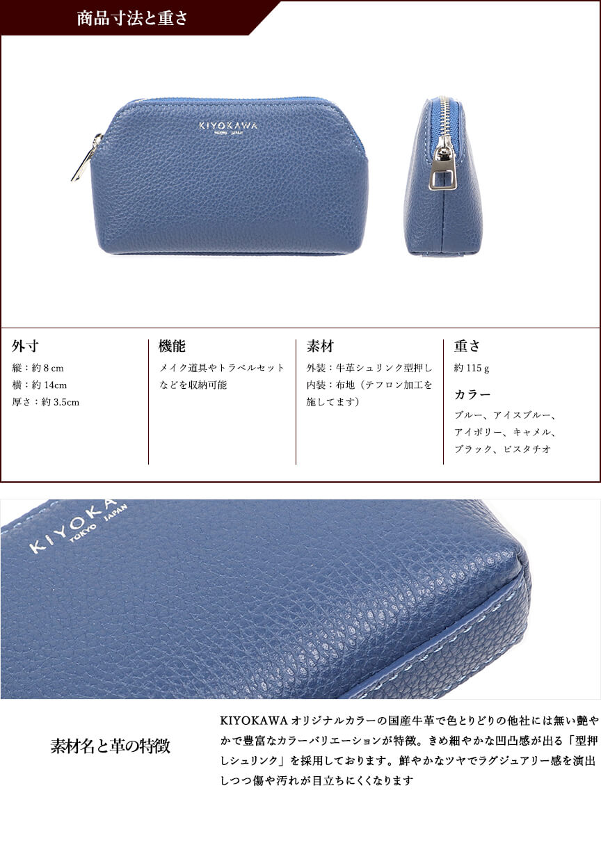清川商店 牛革シュリンク型押し ポーチS KIYOKAWA