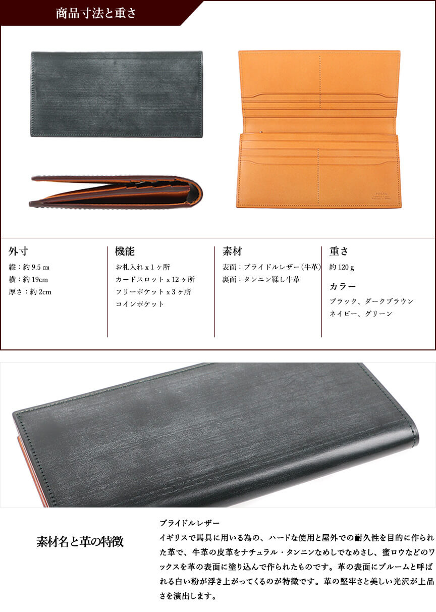 ブライドルレザー(牛革)内革:ヌメ革