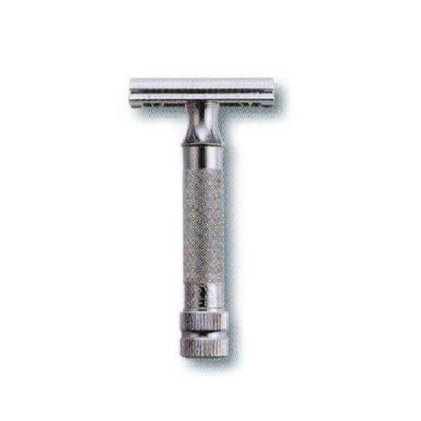 メルクール社はドイツ・ゾリンゲンの安全カミソリ器の専門メーカーでホルダーと替刃を製造しています。 両刃ホルダー(クロームメッキ)、金属製本体なので手に適度の重量感が伝わります。
