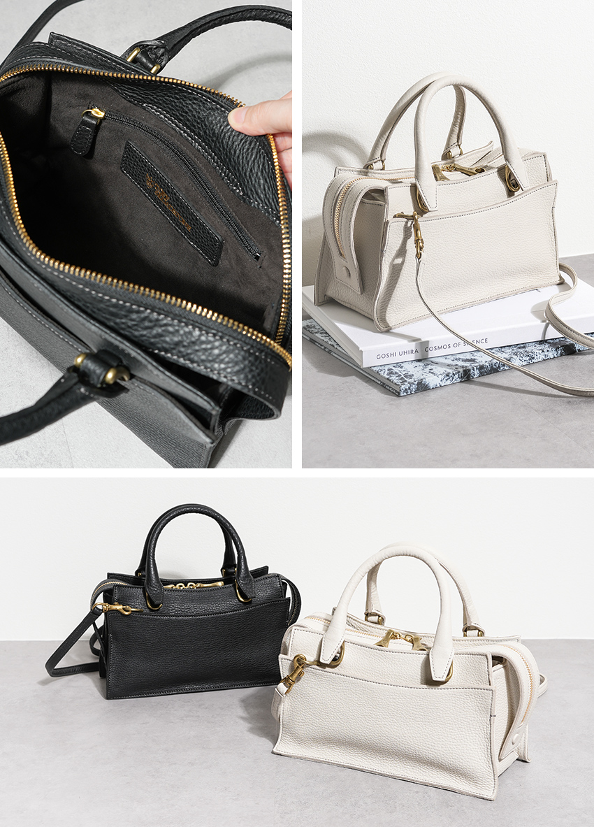 ハンドルと取り外し可能なショルダーストラップ付きの2WAY仕様。フォーマルな場面ではハンドバッグとして上品に、カジュアルな日常ではショルダーとして快適に、シーンによって使い分けできます。