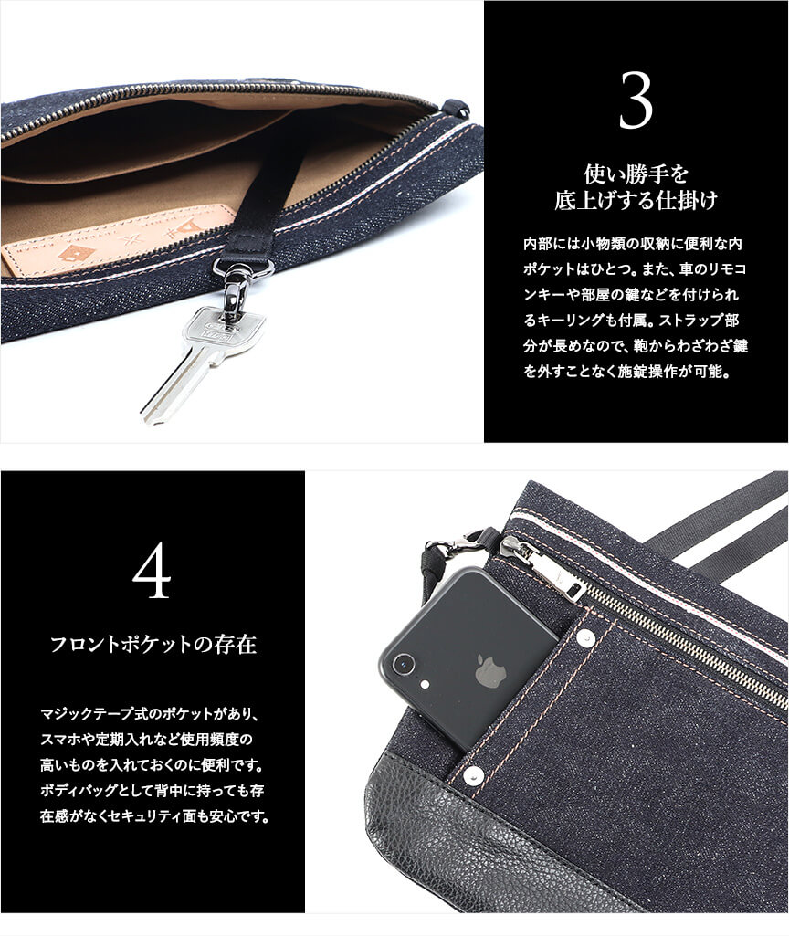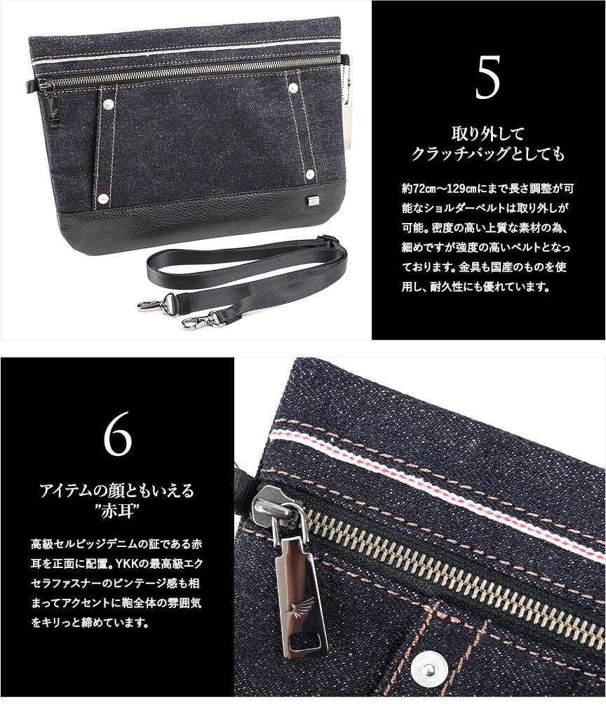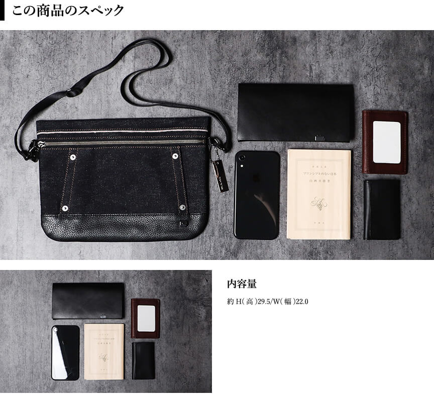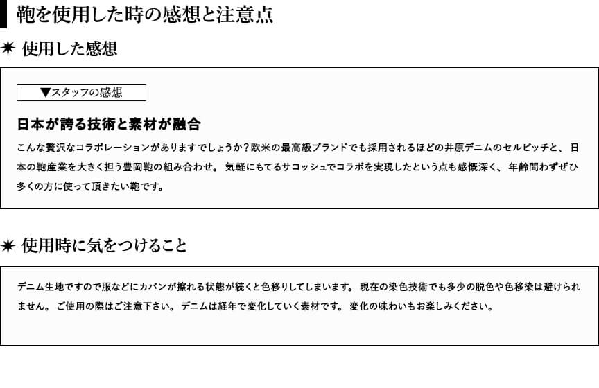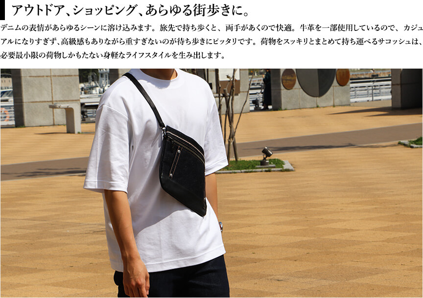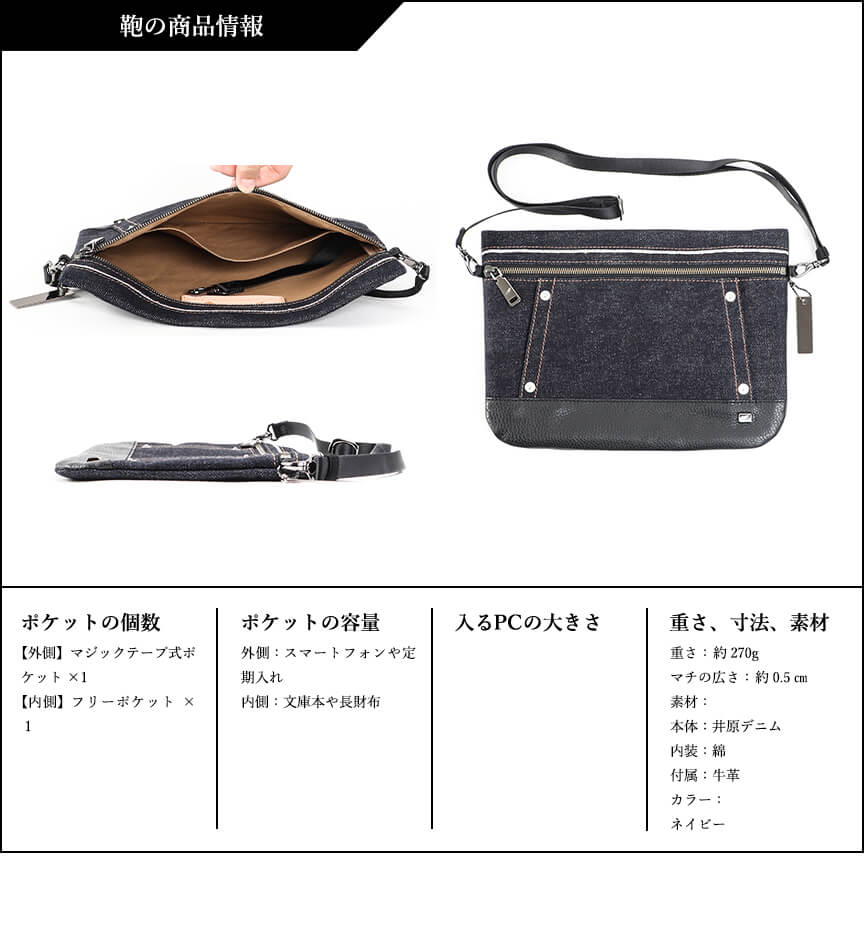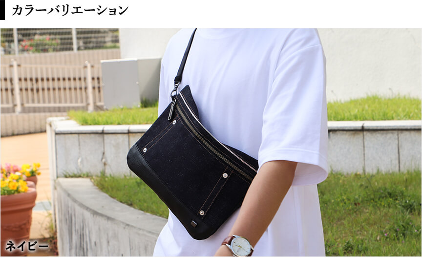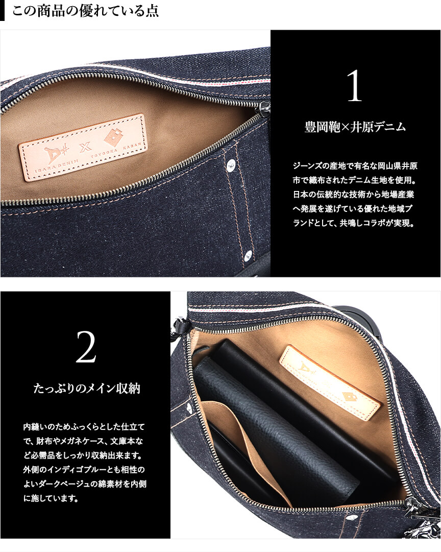 〈本体素材〉井原デニム〈付属素材〉牛革〈内装生地〉綿